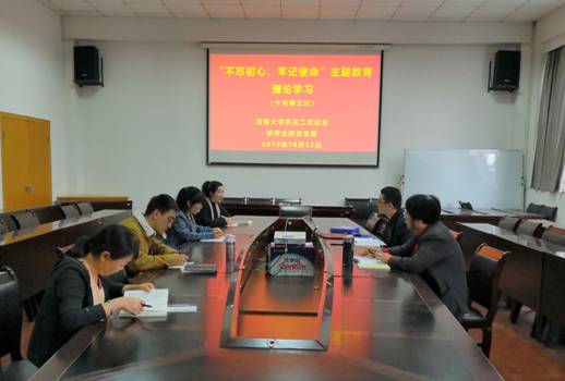 10月22日上午,研究生院全体教职员工在二楼会议室开展了第六次“不忘初心、牢记使命”主题教育集中理论学习,学习内容为《习近平关于“不忘初心、牢记使命”论述摘编》第六至第十章。李长友、肖宪平等做了会议发言。
